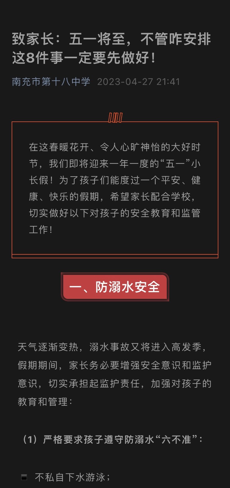 五一假期,安全教育